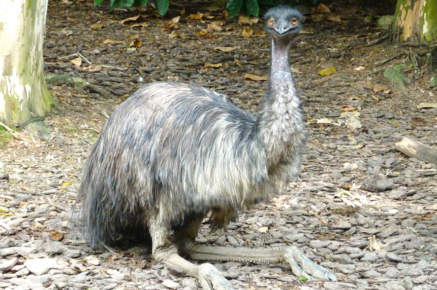 Native to: Australia Height: 1.5-1.9 meters Weight: 18-60 kilograms Life span: 10-20 years, longer in captivity Eats: plants, insects, stones (to help digestion) Can I eat it? Yes. Emus are raised for meat in Australia and other parts of the world, including the United States and China. Their skin is turned into leather and their fat is rendered into oil for cosmetics and dietary supplements. You should know: An emu has a pouch in its throat that can be inflated to make deep booming sounds. Their “bloodcurdling” hisses scare off dingoes. What should I do if I encounter one? Be cautious, as you would with any wild animal. Emus have claws but are more likely to run away from you than attack. And at the Australian Reptile Park north of Sydney, you can even pet the emus, which run loose with several kangaroos.