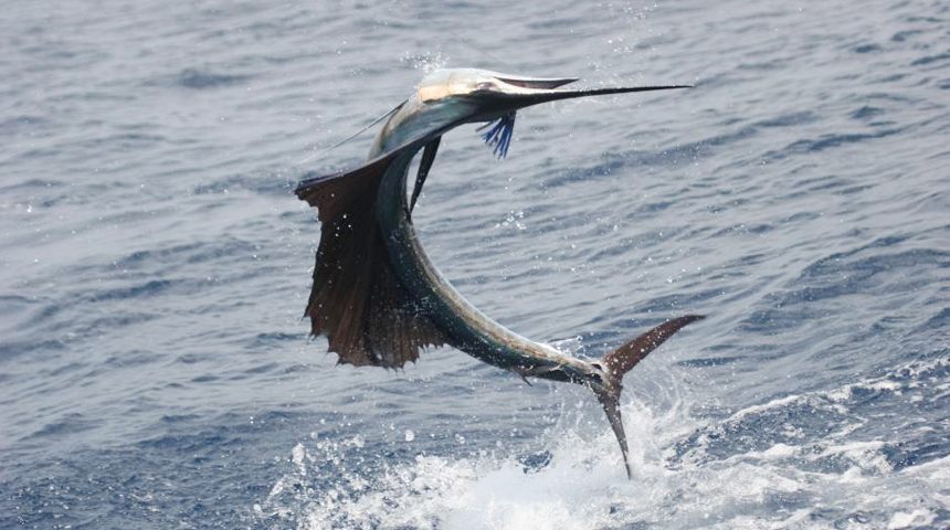 Sailfish are named for the sail-like fin on their backs, but they can also be characterized by their elongated bills.