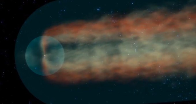 Clover-shaped clumps of charged particles extend billions of kilometers in our wake.